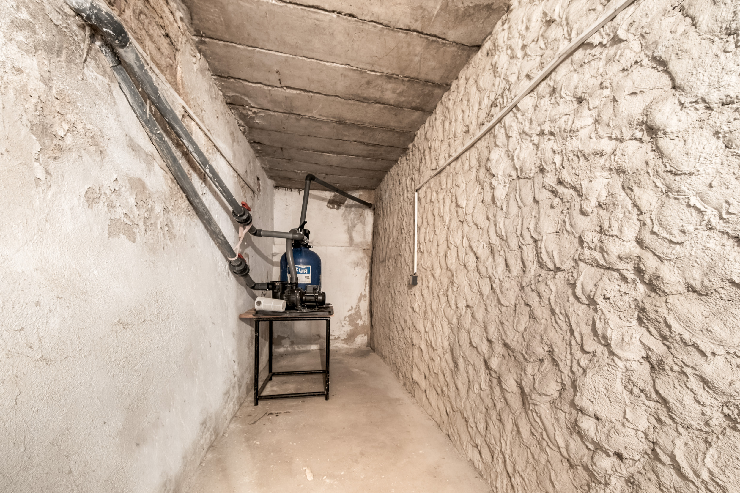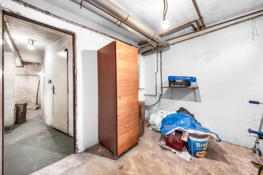 Dům je částečně podsklepený a nabízí dostatek suchých úložných prostor. Jedna ze sklepních místností slouží jako technické zázemí pro filtraci bazénu, takže není nutné každoročně řešit zazimování a odzimování.