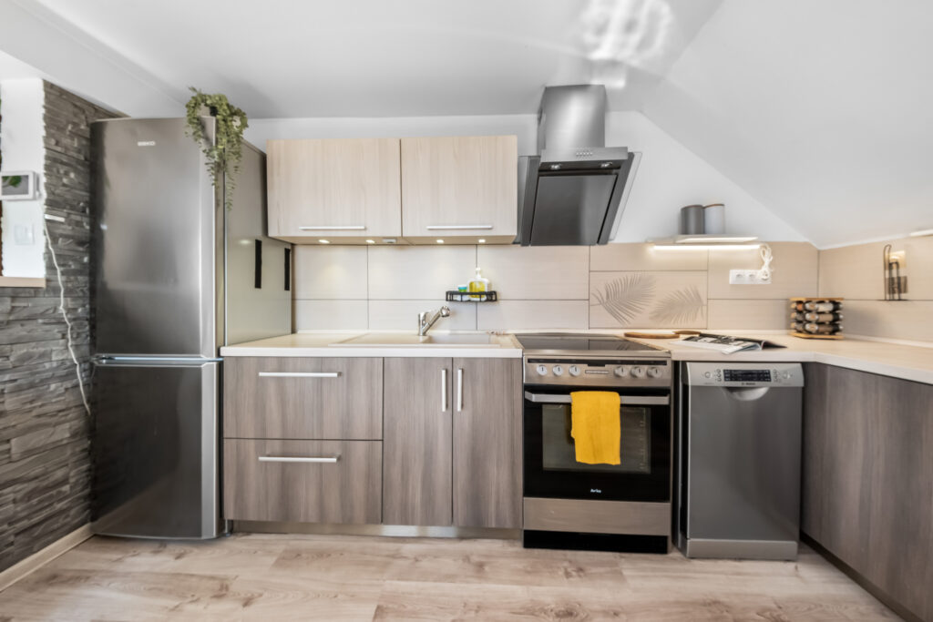 V 1. nadzemním podlaží se nachází bytová jednotka o dispozici 2+kk doplněná o další místnost s oknem, kterou lze využít jako pracovnu či šatnu. V podkroví je umístěna druhá bytová jednotka o dispozici 3+kk, která byla rozšířena přístavbou verandy o její nástavbu.