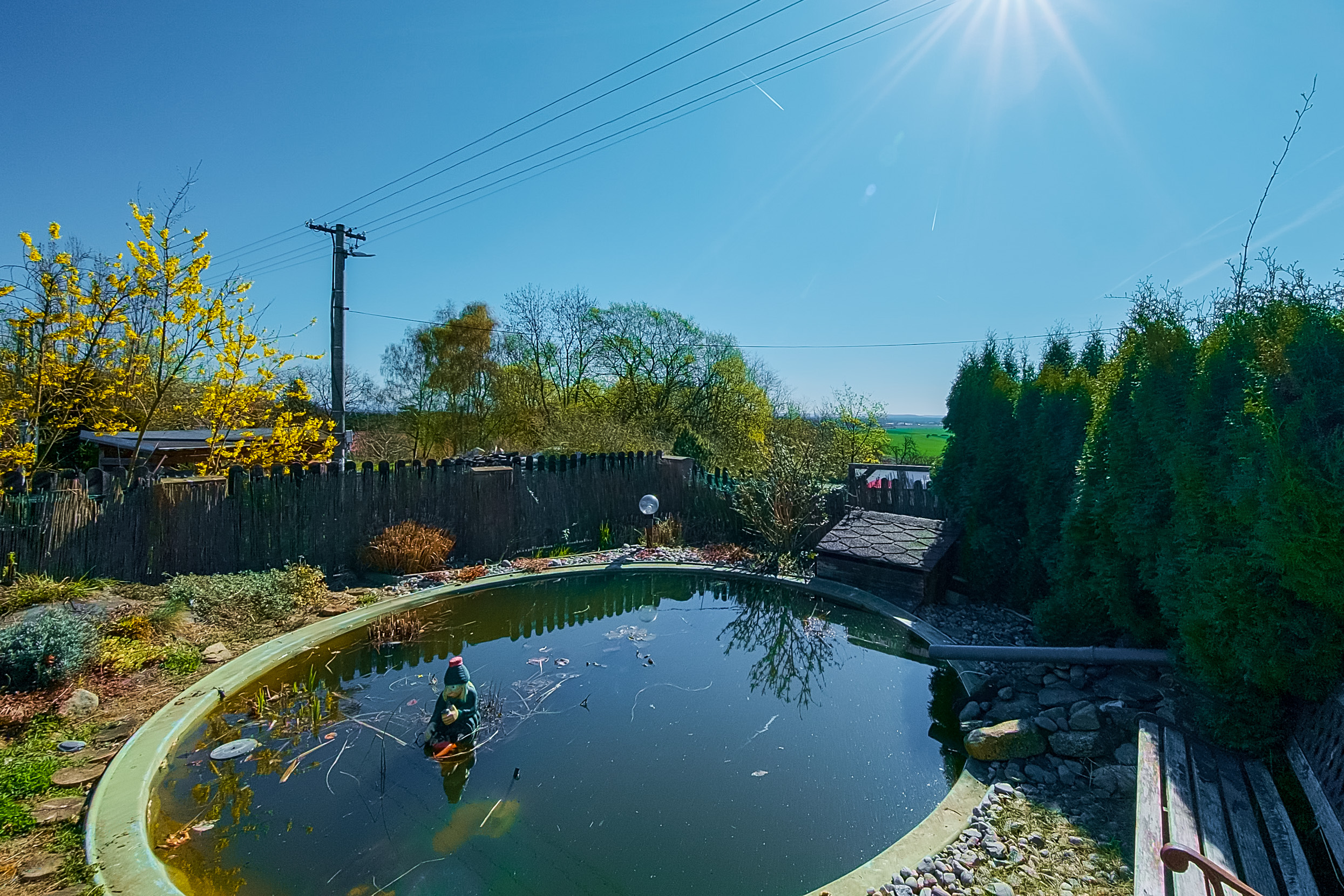 Zahrada nabízí dostatek prostoru, soukromí i příjemná zákoutí pro odpočinek. Najdete zde dvě pergoly, parkovací přístřešek, vzrostlé stromy i starší bazén, který je aktuálně ve stavu k úpravě dle vlastních představ.