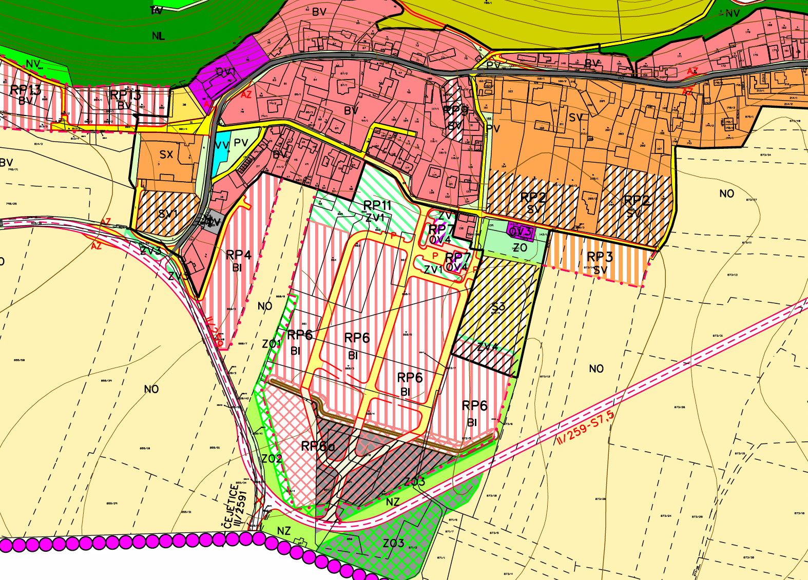 Parc. č. 872/7 se dle platného Územního plánu obce Dalovice nachází v rozvojové ploše RP6 s funkčním využitím BI – bydlení v rodinných domech (městské / příměstské). Územní plán umožňuje také řadovou zástavbu rodinných domů.