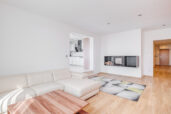 Byt je kompletně zařízen nábytkem a připraven k nastěhování. Součástí je moderní kuchyňská linka se spotřebiči, klimatizační jednotka umístěná v kuchyni a krb na dřevo v obývacím pokoji. Vytápění a ohřev vody jsou zajištěny centrálně. Dům je vybaven dvěma výtahy. V domě je rovněž zaveden optický kabel, smlouvu s poskytovatelem internetu si sjednává a hradí nájemce.